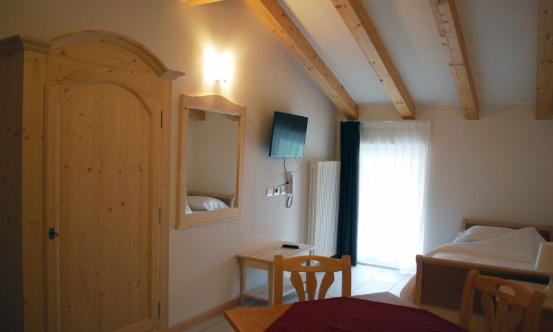 Alcuni bilocali hanno la vista verso il Becco di Filadonna e il monte Cornetto e altri verso il bosco e il giardino sul retro dell'Hotel. Questo bilocale non è dotato di balcone a differenza di quelli da 4 posti con angolo cottura.